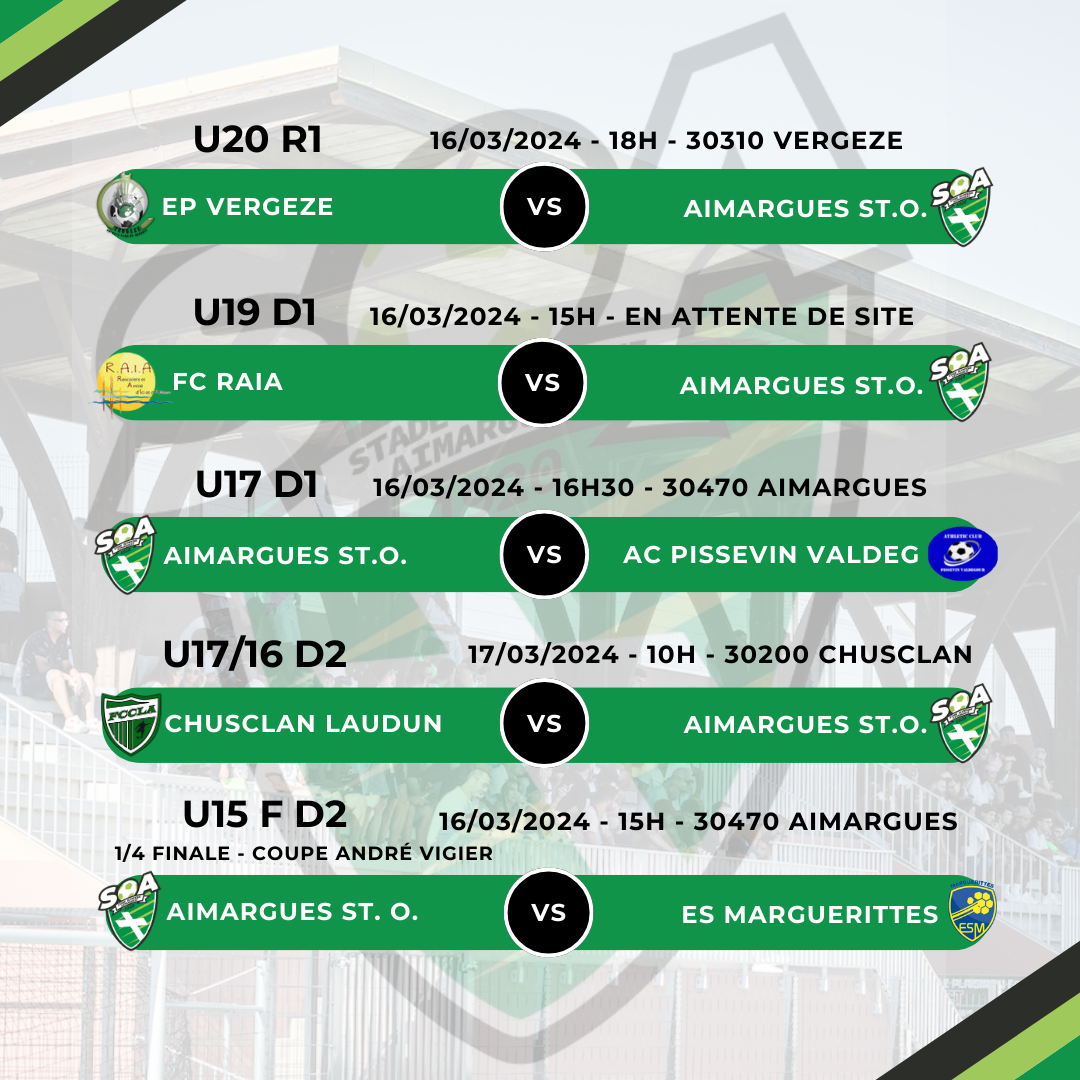 ⚽️MATCHS JEUNES DU 16 et 17 Mars 2024⚽️